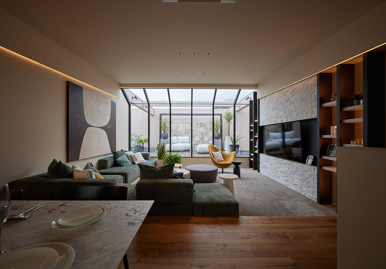 開放とプライバシーが共存するアウトドアリビング