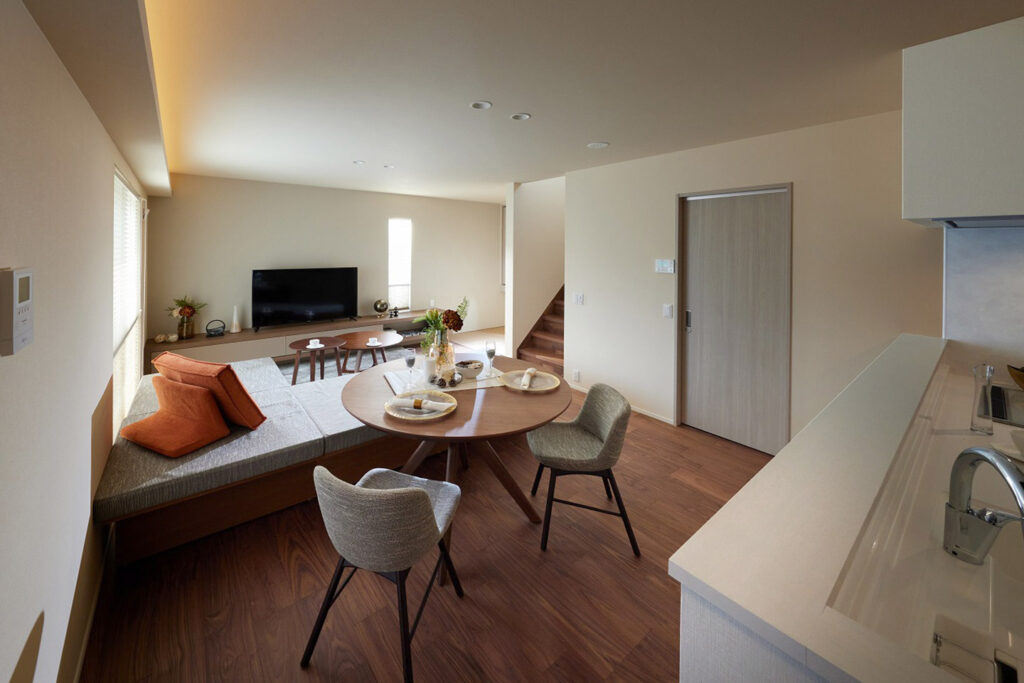 家具の配置によって、家族のコミュニケーションが取りやすい広がりのあるLDKに。